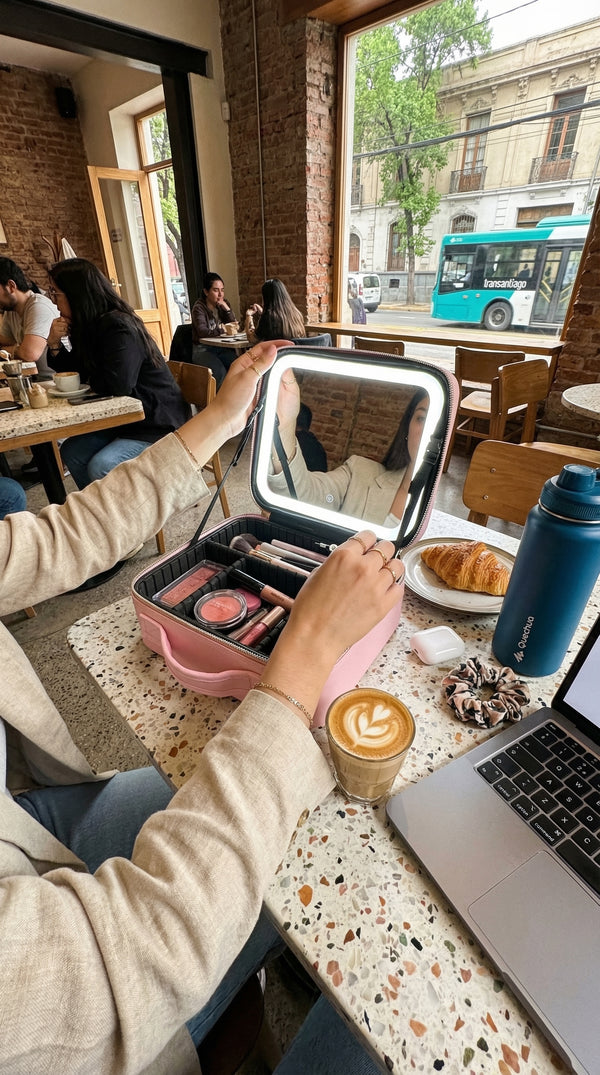 Tu estación de maquillaje, donde vayas 💄 El cosmetiquero con espejo y luz LED que está agotando stock en Chile. Diseñado para la mujer que no descuida su look ni en viajes ni en el trabajo. ¿Por qu...