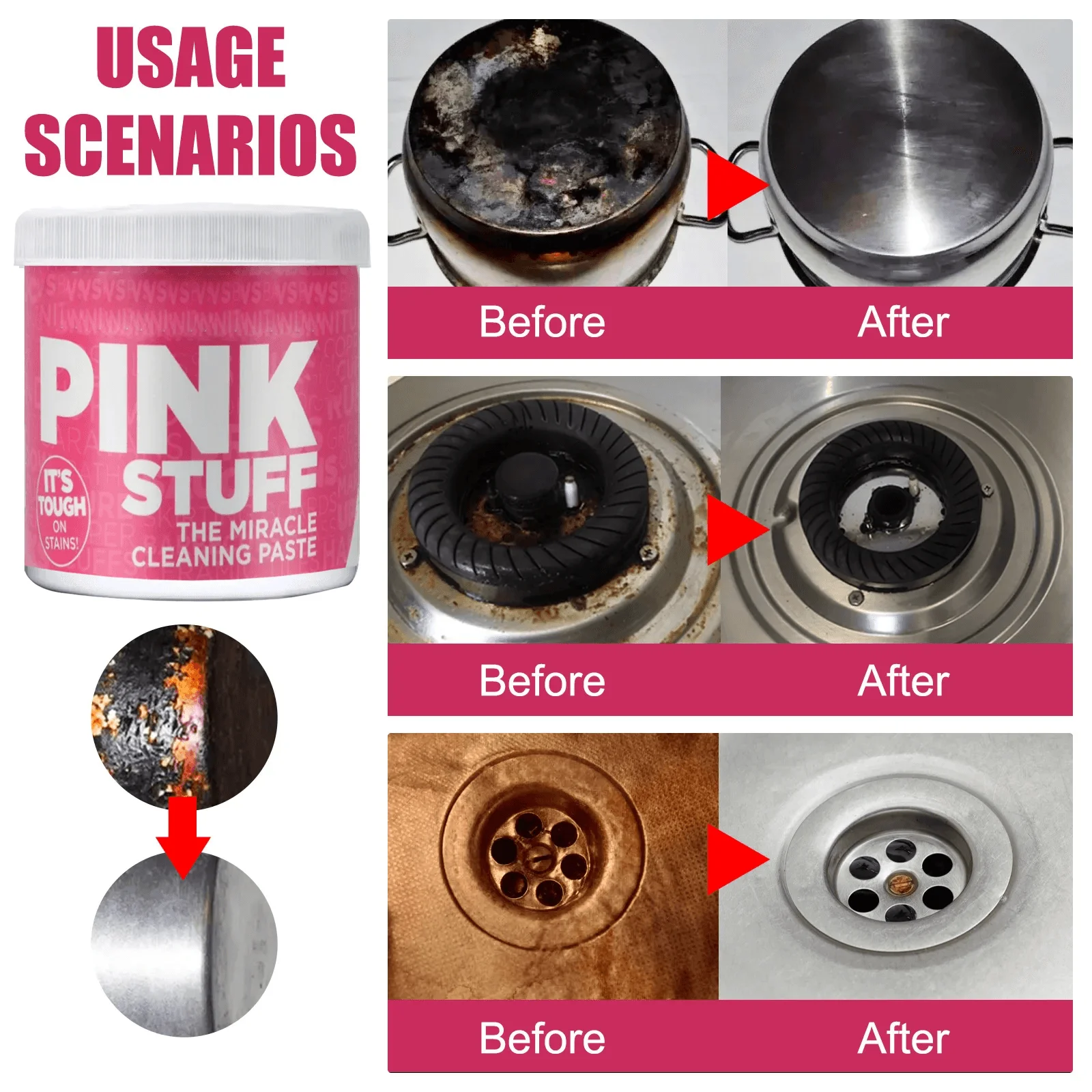 - Perfecta para usar en la cocina, baño, y otras áreas del hogar. Ideal para limpiar y pulir encimeras, fregaderos, electrodomésticos de acero inoxidable, grifos, baldosas y más.