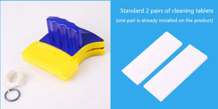 Características:100% nuevo y de alta calidad cepillo de limpieza de vidrio magnético de doble cara es el más nuevo desarrollo para trabajos de limpieza el vidrio de la ventana ya no es un trabajo difuso y peligroso tan fácil y divertido. Apto para vidrio de 3-8mm de espesor **** no apto para vidrio de doble acristalamiento **** métodos los potentes imanes internos bloquean los dos lados de limpieza (esponja con una escobilla de goma) juntos a través del vidrio para que cuando se mueve un lado, El otro lado sigue. Todo lo que tienes que hacer es deslizar el limpiador magnético hacia adelante y hacia atrás para limpiar completamente el vidrio. Usa la esponja para lavar y descomponer la suciedad en superficies de vidrio, azulejos o espejos. Luego gire el mango y utilice la dirección de las flechas para limpiar y pulir para obtener una superficie limpia de vidrio. ¡Se puede utilizar para limpiar ventanas, invernaderos, peceras, conservatorios, claraboyas, puertas de patio, ventanas de dormitorio e incluso mamparas de ducha, espejos y azulejos! Especificaciones Material: ABS/acero al carbono/Goma/esponja/paño de limpieza Color: como muestra la imagen tamaño: tamaño de referencia longitud del diagrama de la cuerda de seguridad: 120cm
