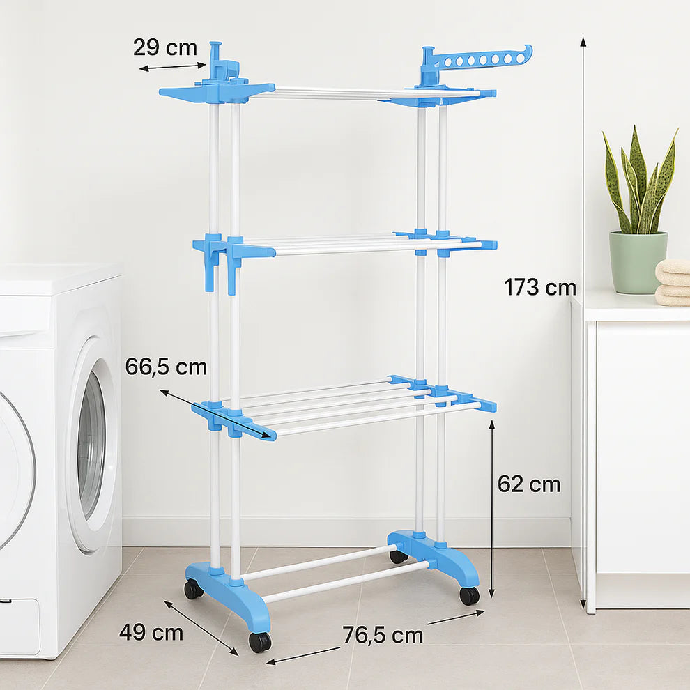 Maximiza el espacio de tu hogar con el Tendedero Ropa Perchero Plegable Colgador de 3 Niveles, la solución ideal para secar tu ropa con facilidad y eficiencia. Diseñado para adaptarse a cualquier espacio, este tendedero cuenta con un sistema extensible que te permite ajustarlo según tus necesidades, proporcionando una gran capacidad de secado en un diseño compacto y fácil de almacenar.